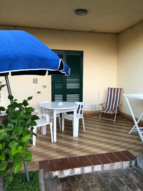 Completo di un patio arredato, questo appartamento climatizzato dispone di un angolo cottura attrezzato con frigorifero. Il bagno è dotato di doccia e asciugacapelli.